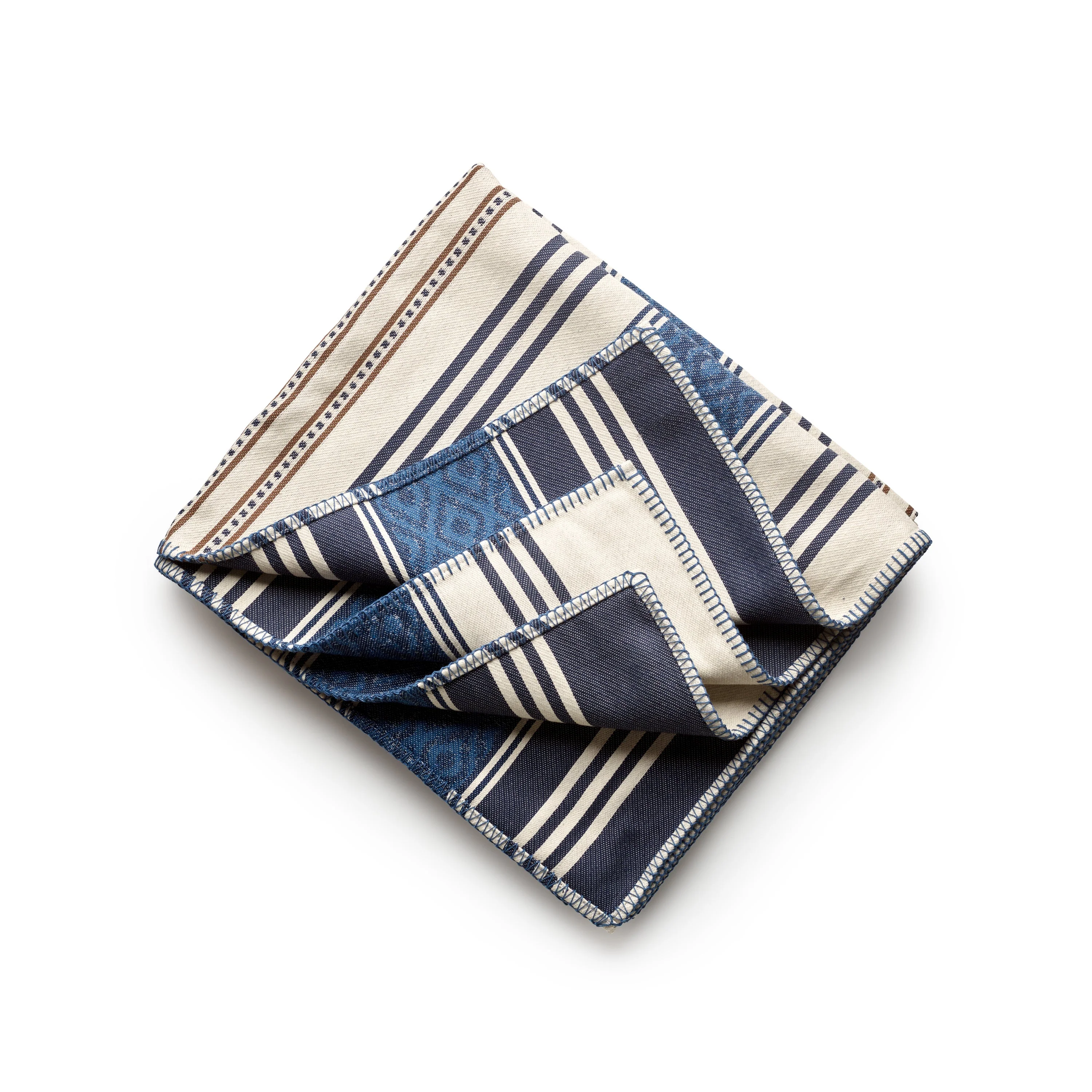 Presented in navy and ecru, highlighted with a chestnut brown. The throw is finished in the soft Lancashire water, to create a soft and cool handle.