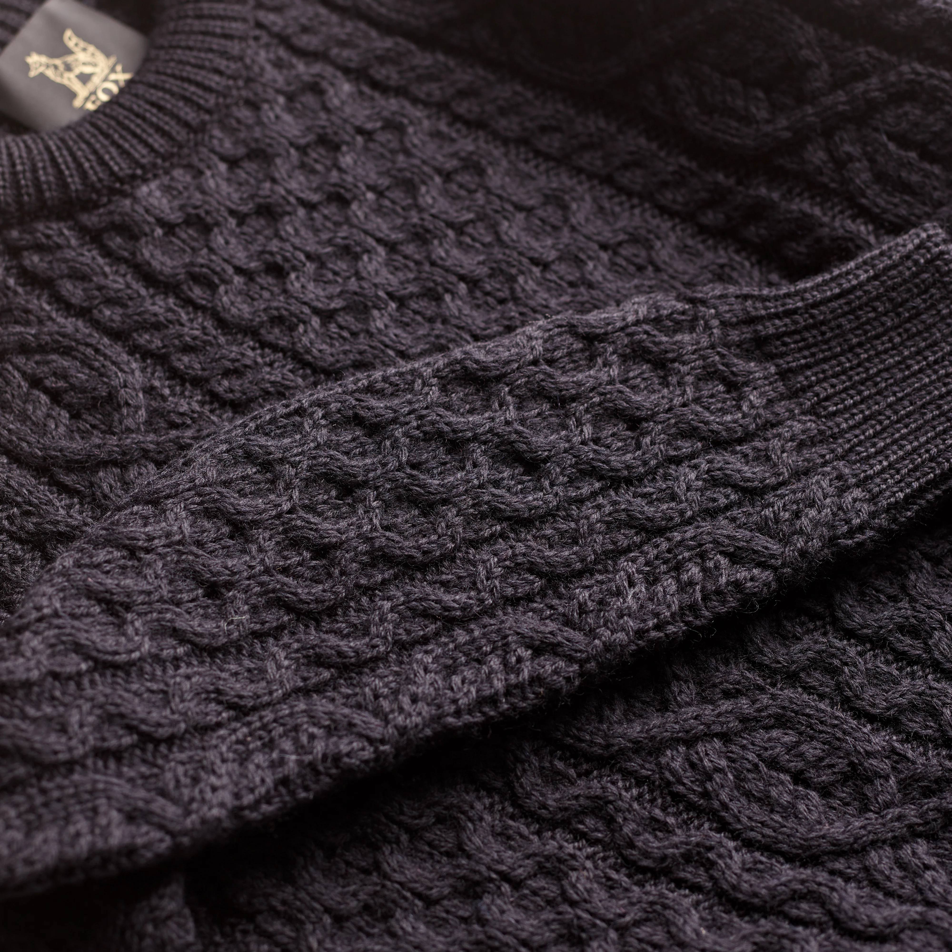 Its heavyweight construction provides natural warmth and strength, while the intricate cable patterns recall the ropework and textures found across Britain’s coastal heritage. Each stitch carries a story that traces back to the early 1900s and the Aran Islands, where these fisherman’s jumpers were originally created to withstand the harsh Atlantic climate.